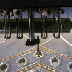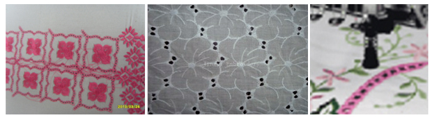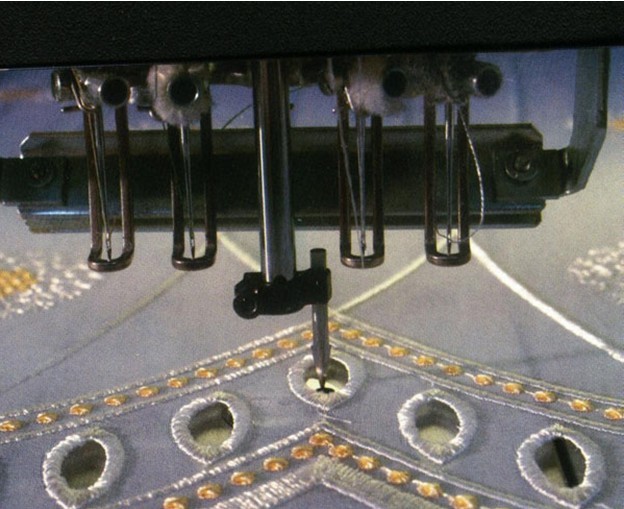 刺繡面料上打出孔洞后進行包邊刺繡,這是一種對制版及設備有一定